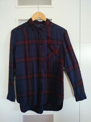 Camisa de Mango de chico, talla M, regular fit, manga larga, color rojo y azulón de cuadros tipo leñador, botones de nacar. Es de mi hijo y tiene pocas puestas pq se le ha quedado pequeña