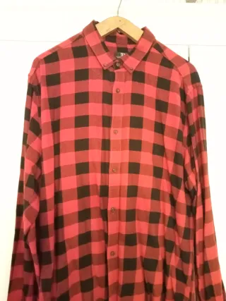 Camisa manga larga de cuadros de Jack&Jones. Cuadros color negro y rojo. Talla XL. Material 100% algodón. En perfecto estado. Medidas: - Ancho de hombros: 46 cm. - Axila a axila: 55 cm. - Largo: 75 cm.