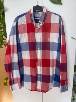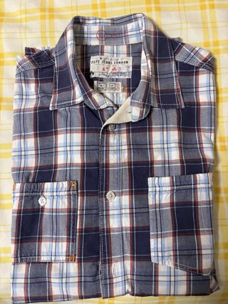 Camisa de cuadros de Pepe Jeans en talla L. Un básico para cualquier armario. - Diseño a cuadros en tonos azul, rojo y blanco. - Cierre de botones. - Dos bolsillos en el pecho.