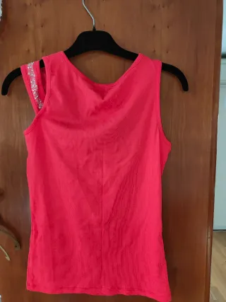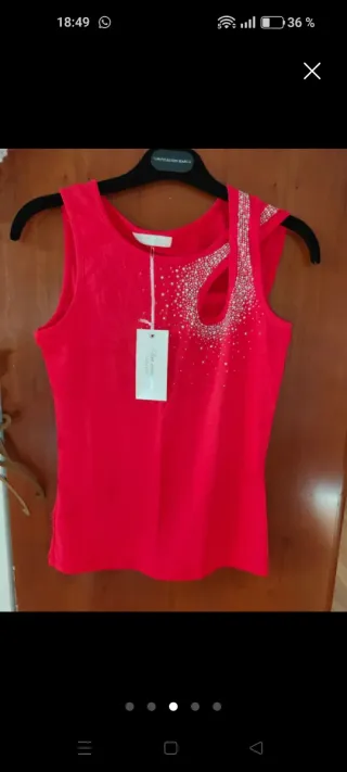 - Top sin mangas de color rojo, escote con brillantes plateados. Nueva con etiqueta. - Tienda local Avellana. Precio original 24,90€