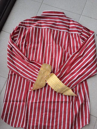 Camisa de la marca Paul Shark Yachting con un diseño de rayas verticales. - Patrón de rayas rojas y blancas. - Cuello clásico. - Puños con detalle de rayas amarillas y blancas. APENAS USADA!