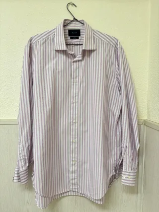 Camisa de vestir de manga larga con un diseño de rayas finas en rosa y blanco. Cuello abotonado. - Tejido 100% algodón. - Acabado self-iron para un planchado más fácil. - Corte regular fit. -Precio en el corte inglés 80€