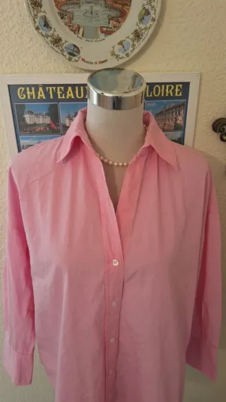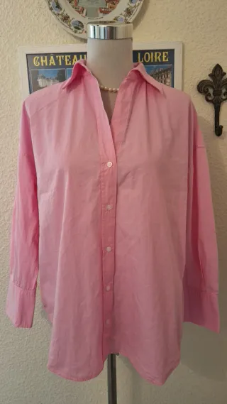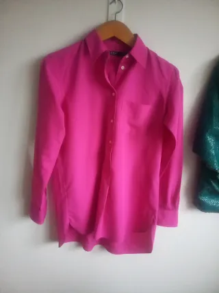 Camisa amplia de Zara en color rosa. - Diseño oversize. - Cuello camisero. - Cierre de botones. - Puños abotonados.
