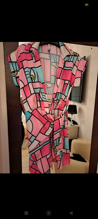 Sin estrenar pero sin etiqueta. Made in Italia. Suave y muy gustoso. Estilo Chiara Ferragni - película Barbie - Margot Robbie. Motivos geométricos cuadrados, ojos, rosa y azul.