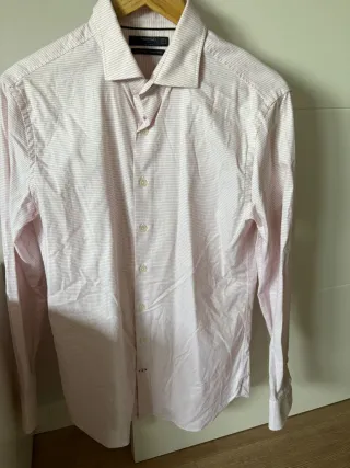 Camisa de manga corta de la marca Zara. - Color rosa. - Diseño con microestampado. - Cuello camisero. - Cierre de botones.