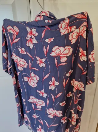 Camisa de manga corta con un bonito estampado floral. - Diseño con flores en tonos rosa y blanco. - Base de color azul marino.