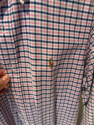 Camisa de manga larga con estampado de cuadros. - Cuadros en tonos rosa y azul marino. - Logo de Ralph Lauren bordado en el pecho.