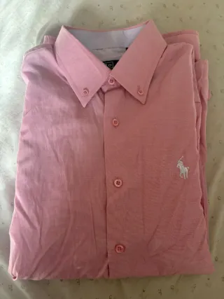 Camisa de vestir de la marca Polo Ralph Lauren en color rosa. Presenta un diseño clásico con cuello abotonado y el icónico logo del jinete bordado en el pecho. - Cuello con botones. - Logo bordado. - Tejido texturizado.