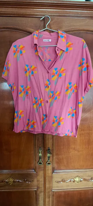 Camisa de manga corta con un alegre estampado floral. - Diseño con cuello - Cierre de botones - Estampado multicolor sobre fondo rosa