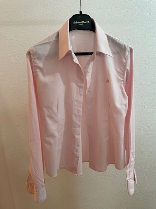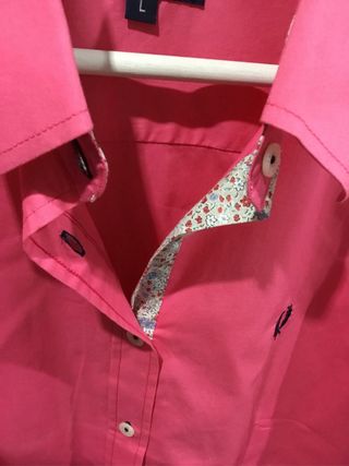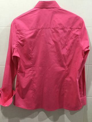 Camisa en color rosa. De tejido fino.Presenta detalles en los puños de pequeñas flores. Completamente nueva, sin estrenar.