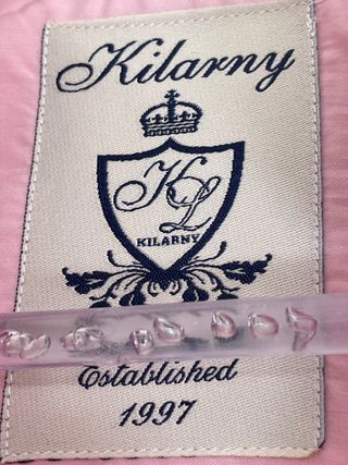 camisa rosa con coderas en azul marino con topos y ribeteado rosa talla S nueva sin estrenar marca Kylarny