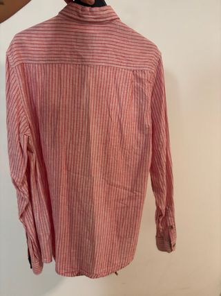 Camisa, de color rosa claro, de la marca Springfield. Completamente nueva. Usada 2 o 3 veces a lo mucho. El color de la camisa es el de la primera foto, ya que en la segunda no se aprecia tanto por la calidad de la cámara. Talla M, aunque para alguien que use una L también le vale.