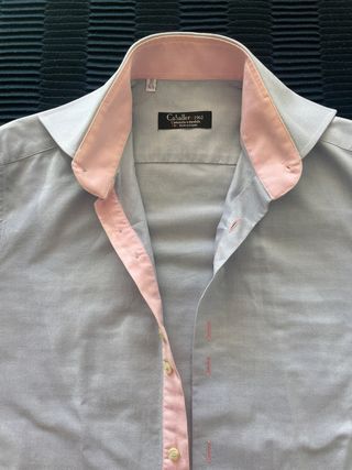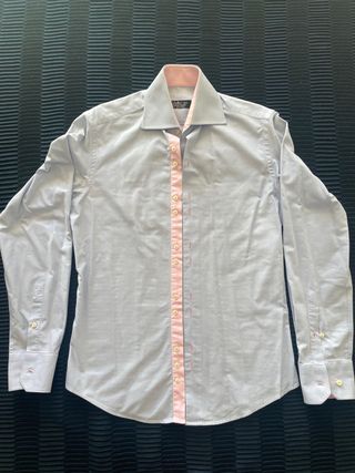 Camisa de hombre Caballero 1962. Talla 37. Color celeste y detalles rosados. Slim fit. Muy poco uso
