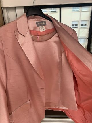 Conjunto de camisa de manga corta con blazer rosa. Solo usado una vez