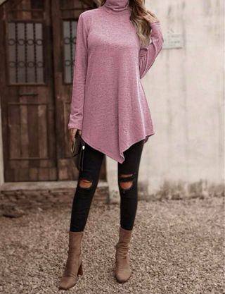 camisera larga de cuello alto y bajo asumetrico rosa es cakentita fina y suave al tacto oeeciosa ideal para invierno nueva a estrenar envios disponible