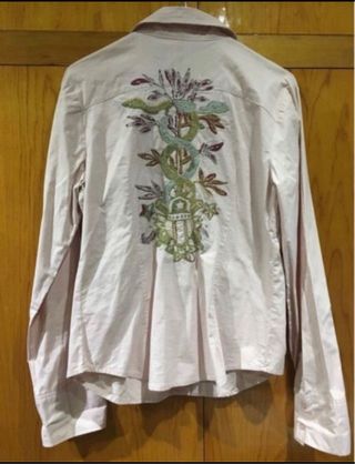 Camisa de manga larga Medidas: hombros 40cm, pecho 54cm, largo 69cm, mangas 67 cm. - Cuello camisero. - Bolsillo en el pecho. - Cierre de botones.