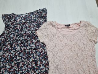 La Camisa de flores es de la marca Okeisy y la camiseta rosa es de la marca Amisu