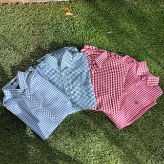 Camisa de manga larga con un diseño a cuadros en tonos rosa y blanco. Presenta un bordado en el pecho. - Cuello con botones. - Cierre de botones en la parte frontal. - Puños con botones.