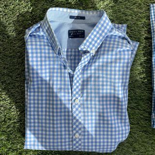 Pack de camisas de cuadros azul, burdeos y rosa en perfecto estado de diversas marcas (Montepicaza, Unit, Doc y Sfera Men, ver fotos). Talla M. El pack se puede combinar con el de cuadros más pequeños.