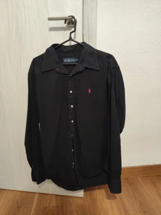Camisa de manga larga de la marca Ralph Lauren. Perfecta para cualquier ocasión, de fiesta, formal etc - Color negro. Talla L - Logo de la marca en color rosa en el pecho.