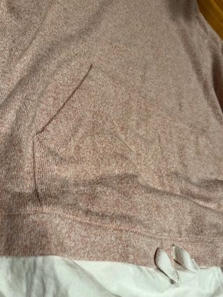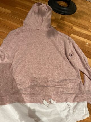 Sudadera efecto camisa, color rosa palo y bajo camisero azul y banco. En perfecto estado, muy cuidada. Talla XL