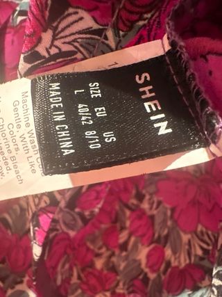 ✅ Estilo: Estampado barroco/cadenas, colores muy vivos (Rosa, Naranja, Azul). ✅ Diseño: Camisa que se anuda en el bajo, manga 3/4 o larga remangada. ✅ Tejido: 95% Poliéster, 5% Elastano (Tejido fino, con buena caída y un poco elástico). ✅ Talla: Estimada M (equivalente a 38/40). ✅ Estado: Nueva sin Usar