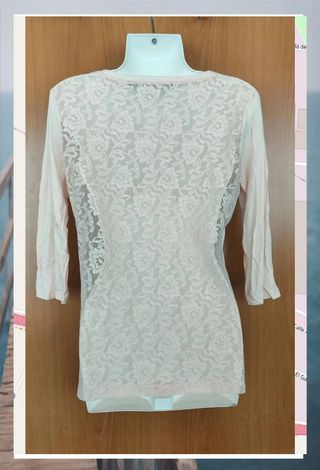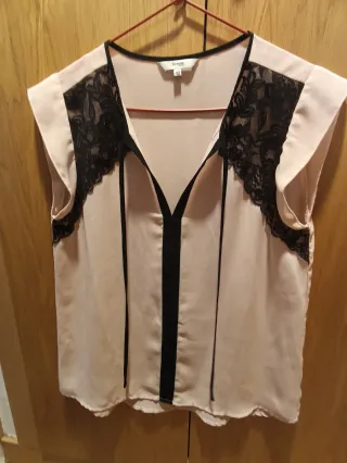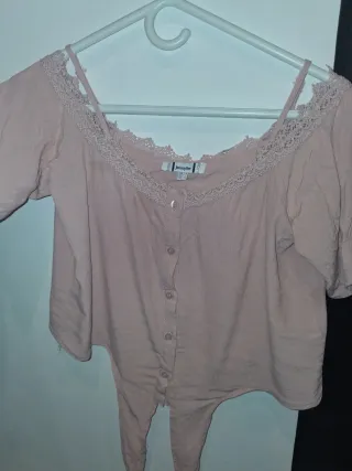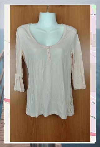 Camisa de temporada con un diseño precioso. - Escote con detalle de encaje. - Cierre de botones. - Mangas cortas.