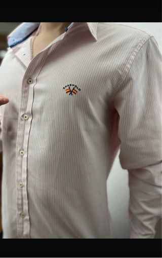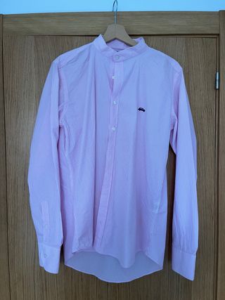 Camisa de manga larga de rayas blancas y rosas. Talla 40, en muy buen estado. - Cuello abotonado. - Logo bordado en el pecho. - Puños con botón.