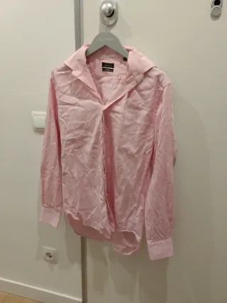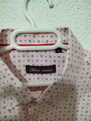 Camisa de vestir en color rosa, talla L. Sin estrenar, con etiqueta (comprada por error en Amazon, y luego se me pasó el plazo para devolverla 😔) - Cuello con detalle de estampado. - Genial para salir de fiesta con un color diferente y que viste.