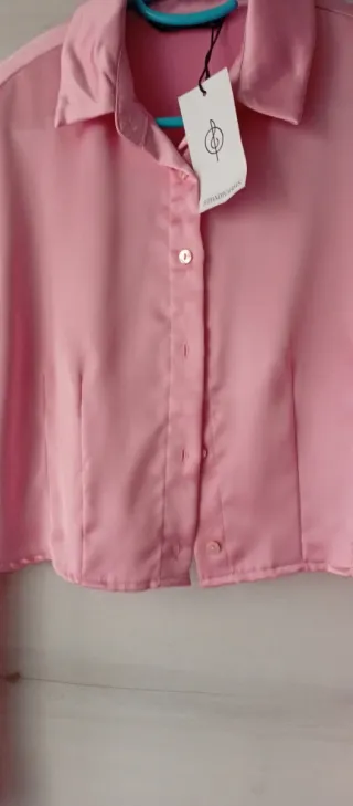 Elegante camisa de satén con un bonito acabado brillante. Su diseño moderno la hace perfecta para diversas ocasiones. - Material: Satén - Color: Rosa - Corte: Crop - Cierre: Botones frontales - Puños abotonados