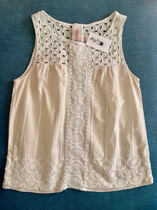 a estrenar Sin uso, una cucada, Tonos rosas y crudo (la foto no hace justicia, es mas rosado al natural) Es suelta, y el calado es precioso. #camisetacalada #camisetatirantesbordados #hm34 #camisetacaladahym #tiranteshym #hym36
