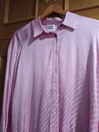 Camisa rosa con círculos blancos. Marca Stradivarius. Talla M.