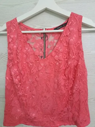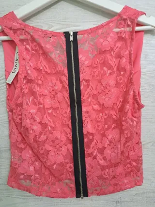 Camiseta de encaje con un bonito diseño floral. - Tejido de encaje. - Cremallera trasera. - Sin mangas.