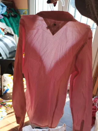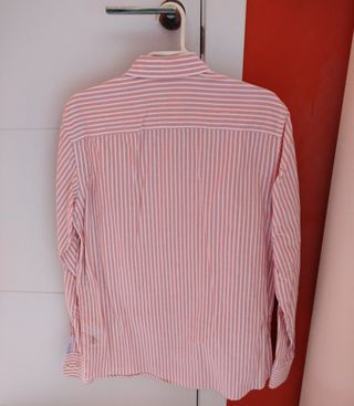 Camisa de manga larga con un diseño de rayas verticales en tonos rosas y blancos. Cuello abotonado. - Diseño a rayas. - Cuello con botones. Precio negociable