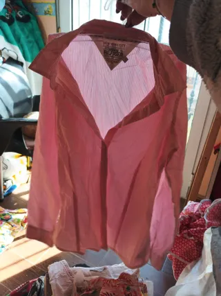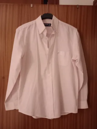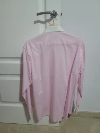 Elegante camisa de vestir en tono rosa, con cuello de traje y puños blancos. - Diseño clásico. - Cierre de botones. Nunca se ha usado, me la compré y no me queda bien.