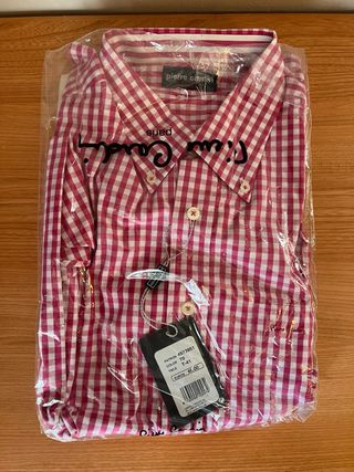 ⚠️Camisa nueva con su etiqueta original y su envoltorio original, sin estrenar. Costó 46€. 📌Camisa de manga larga con estampado de cuadros en tonos rosas y blancos. Cuello abotonado. - Marca: Pierre Cardin - Color: Rosa - Talla: T-41 (equivalente a L) - Cierre de botones - Cuello con botones