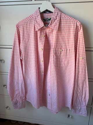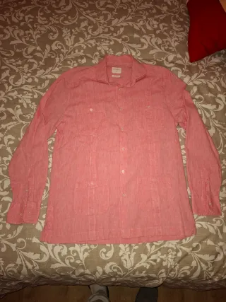 Camisa de manga larga con un estampado discreto en tono rosa. - Cuello clásico. - Cierre de botones. - Bolsillo en el pecho. Precio negociable