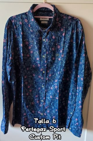 Camisa de manga larga con un discreto estampado. - Cuello con botones. - Cierre de botones en la parte delantera. - Puños abotonados. Precio negociable