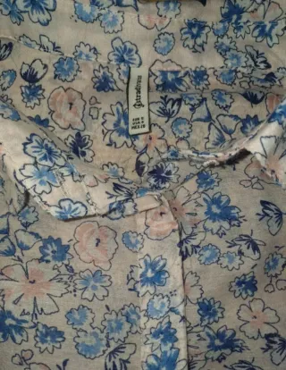 Camisa fina de manga larga con estampado floral. Es ligera y cómoda. - Diseño con flores azules y rosas. - Cuello camisero. - Cierre de botones.