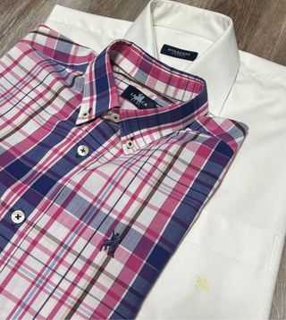 Conjunto de dos camisas, una de Burberry y otra de La Jaca. - Camisa Burberry blanca. - Camisa La Jaca de cuadros rosas y azules.