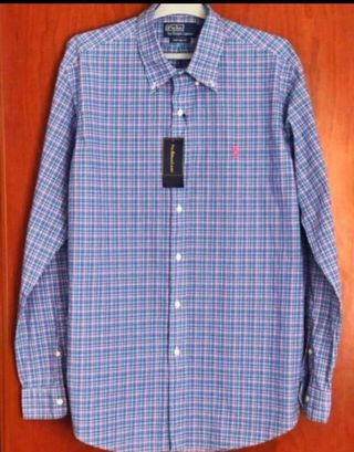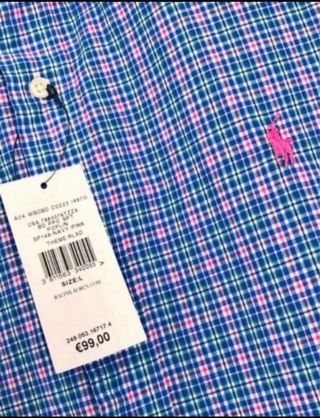 👔 Camisa Polo Ralph Lauren ⭐ Es ORIGINAL 🧔♂️ Para Hombre / Chico 📏 Talla L 🌈 Color Azul / Rosa 🆕 NUEVA con Etiqueta 💵 Precio Original 99 € ✅ Más artículos de marca en mi perfil