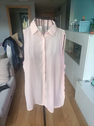 Camisa de Mango en color rosa, ideal para un look fresco y moderno. Su diseño sin mangas la hace perfecta para los días más cálidos. - Cuello camisero. - Cierre de botones. - Tejido satinado. pone XS pero es una m