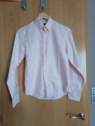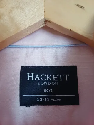 Camisa de manga larga para niño de la marca Hackett. -Tela oxfor -Usada solo una vez para un evento . - Color rosa. - Talla 13/14 años.