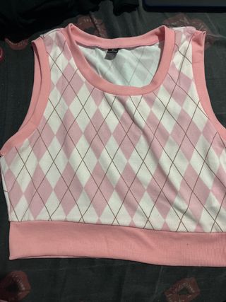 Camiseta sin mangas rombos rosa y blanco T M/L