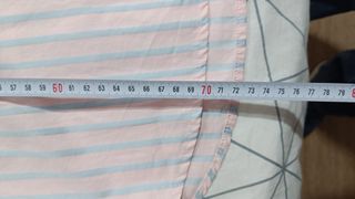 Camisa de manga larga con estampado de rayas azul claro, rosa y blanco Tiene un error de fábrica en un punto, que apenas se ve Usada una vez
