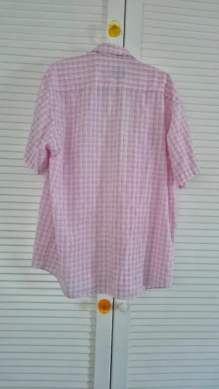 Camisa color blanco y rosa, de manga corta con un diseño de cuadros clásico. - Cuello camisero. - Cierre de botones. - Un bolsillo en el pecho. - Talla XL