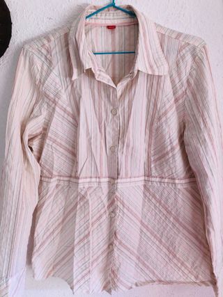 Camisa de manga larga con un diseño de rayas verticales y diagonales. Talla 38/40 - Cuello camisero. - Cierre de botones. - Detalle de costuras en la cintura para un mejor ajuste.