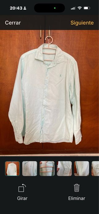 Camisa de manga larga para hombre de la marca Sacalpers. - Color verde. - Cuello camisero. - Cierre de botones. Talla 43: En el tallaje de camisas para hombre, la talla 43 generalmente se corresponde con un contorno de cuello de 41 cm y un contorno de pecho de 108-112 cm. Precios: Los precios de las camisas de Scalpers para hombre suelen oscilar entre 50 € y 80 €, dependiendo del material y si están en oferta. Estado conservación : 9,5/10 Envíos 24/48 horas Seriedad y buenas reseñas Regalos sorpresa y descuento a seguidores