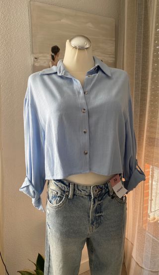 Camisa azul celeste de Stradivarius. Sin uso. talla S