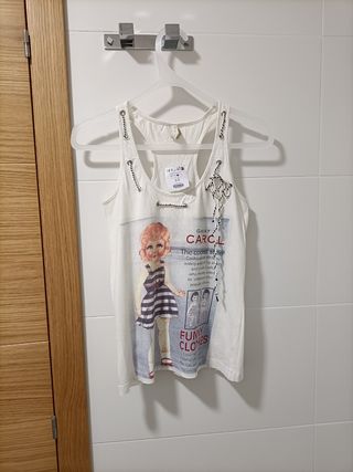 Se vende camiseta de tirantes talla S con estampado de la tienda Stradivarius nueva con etiqueta sin estrenar.